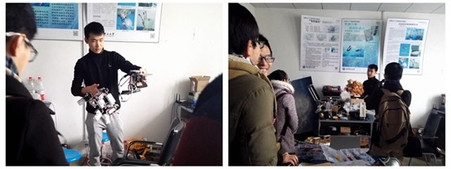 参观结束后,华电交流学习团和我校科创类社团的负责人进行了深入研讨和交流,其中主要包括BIT科创大本营、BIT机器人创新基地、宇航科技创新实践基地、机械与运载学部科技协同中心和北理汽车联盟。首先华电代表团详细介绍了华电的创新创业项目的申请和后期运作情况,大家针对低年级大创项目开展过程中遇到的问题提出了各自的解决方案,并对科创知识普及、科创类活动和竞赛的举办交流经验。最后,我们向华电代表团赠送了beat365在线唯一官网登录2014年科技创新创业成果集。