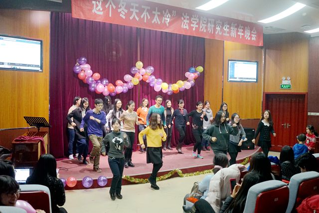 高歌迎元旦,激扬舞青春。 2015年12月29日晚,由法学院研究生会主办的2015年beat365在线唯一官网登录法学院“这个冬天不太冷”研究生冬季晚会在七号楼108举行。法学院党委副书记副院长张爱秀老师、环境法所龚向前老师、诉讼法所周建华老师、办公室主任王福亮老师、研究生教学干事孙海燕老师、本科生教学干事赵静老师、财务干事刘一诺老师以及法学院团委书记聂宁宁老师与研究生们一同欣赏了这场青春盛宴。