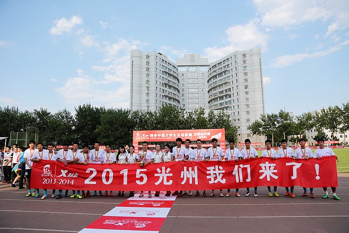 2015年我校足球队在大学生足球联赛加冕八冠王