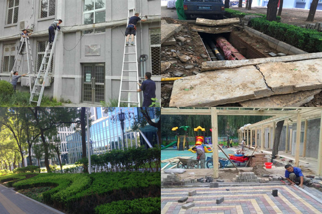 为改善基本办学条件、美化校园环境、建设一流理工大学,学校对2016年度校园环境整治和维修改造工程进行了总体部署,后勤集团充分利用暑期对多项维修改造工程进行了集中施工。此次施工专业工种多、数量大、任务急、要求高,施工环境复杂,为了确保工程高质、高效竣工,后勤集团在放假前就科学缜密制定工程实施计划,集团上下齐心协力、科学组织、有序实施、全面铺开、责任到人,力保暑期七号学生宿舍楼加固改造、理工附小加固改造、理工附小校园文化建设改造、中关村校区学生公寓楼卫生间改造、学生宿舍增设淋浴系统改造、大学生1#配电室改造、中关村校区14号留学生公寓暖气改造、机车学院重点实验室改造工程、良乡化学楼改造、良乡体育课上课场所改造、良乡食堂改造工程、西山实验区南院彩钢板房屋和防护围栏安全改造、秦皇岛分校宿舍南楼和西楼门窗、电改造及粉刷工程等20余项工程高质量如期完工。