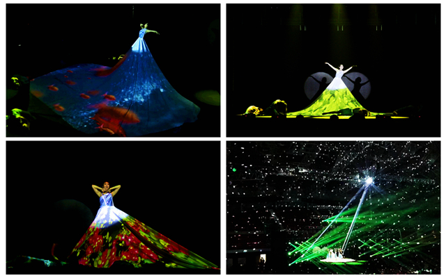 北湖是良乡校区的地标,也是北理人大学起点的共同记忆。舞蹈《北湖》描绘了美丽的校园秋冬春夏的四季美景,当直径8米的大舞裙展开时,当光影将北湖的锦鲤、植被铺陈到象征湖水的大幅舞裙时,现场响起雷鸣般的欢呼与掌声,将晚会推向又一个高潮。