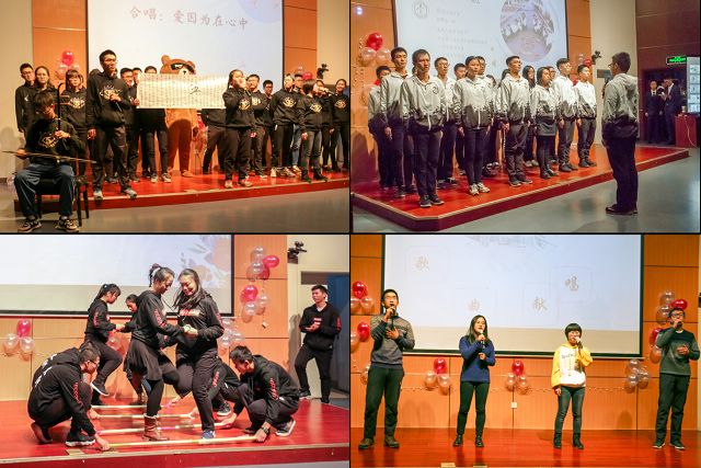 随后进入班级展示环节。各班在按照抽签顺序分别展示并讲解了各具特色的班名,班徽,班服,班训等后,还为我们带来了精彩绝伦的节目。