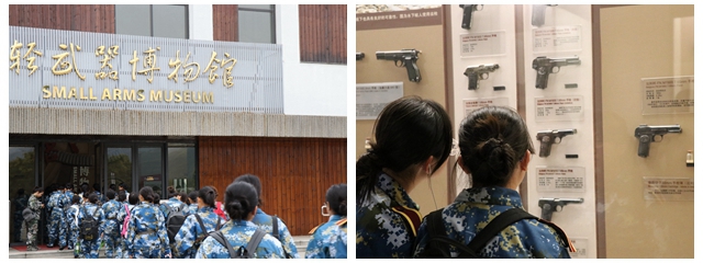 打靶之余,学生还参观了国内唯一的轻武器专业博物馆。馆内陈列了2691件轻武器展品,400余幅珍贵历史老照片及相关文物。学生通过参观大量枪械系统、榴弹武器、单兵制导武器等近现代轻武器实物,对于国防、轻武器知识等有了更深地了解。