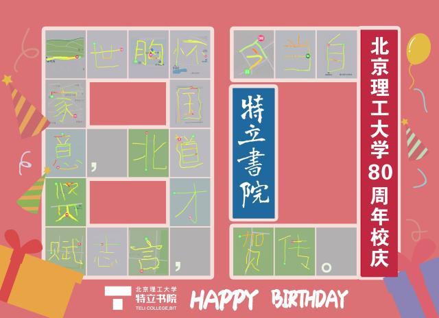 “这个活动看似容易,实则困难重重,有时规划路径被花坛灌木阻挡,有时晴空瞬变突降暴雨,一个字跑了许多次才记录下比较满意的图案。但这也是一个很好的学习过程,不仅锻炼了身体,更培养了耐性和解决问题的能力,我们衷心地希望通过这种方式祝福我理80岁生日快乐。”2019级史峰屹同学在完成跑步后颇有感触地说到。在这次活动中,特立学子牢记总书记五四寄语精神,激扬青春,挥洒汗水,用青春的脚步作画,画出北理年轮80载,以奔跑的形式,传递“延安根、军工魂”的红色基因,以更强健的体魄和更饱满的精神,践行“德以明理、学以精工”的校训精神,勇担新时代青年使命,不负祖国和人民期望,让青春在党和人民最需要的地方绽放绚丽之花。