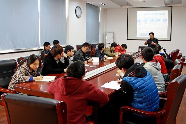 2013年11月14日中午,beat365在线唯一官网登录自动化学院在六号楼3楼会议室举行了以“提升学生骨干宣传工作和新闻写作能力”为主题的培训讲座,讲座邀请到了校党委宣传部副部长王征老师担任主讲,参加本次讲座的有学院各学生组织负责人、学院新闻中心全体成员以及辅导员老师。