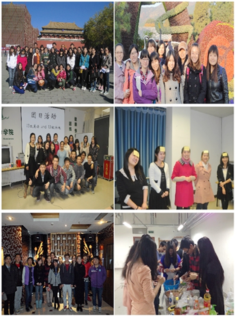 新形势下高校共青团组织面临的挑战主要是如何增强高校共青团组织凝聚力,所以加强自身建设是共青团组织凝聚力建设工作的着力点。本次主题团日活动在学院的授意下,团支部纷纷组织各具特色的交流活动,为团员青年搭建了一个了解不同专业、取长补短,认识社会、学习人生经验的平台,传递了和谐团支部的正能量。研究生2013级笔译团支部鼓励团员青年们拓宽视野,增长知识,与光电学院2013级硕士物理电子学支部共同开展了题为“跨学科交流,促友谊发展”的团日活动;研究生2013级英语语言文学团支部开展了题为“赏红叶•品生活”的秋游团日活动,让团员青年们在欣赏漫山遍野的红叶时,感叹平时只顾埋头于学习、工作,忽略了体育锻炼;本科生2013级西班牙语专业开展“点燃青春,让梦起航”品鉴著作主题团日,力求将书香传遍校园;2012级英语专业团支部开展“红歌会”,让寒冷的冬日变得温暖如春;2011级英语专业团支部发起“我做文明校园小使者”,提倡自行车按序摆放;2011级德语专业团支部的故宫参观活动,让历史与专业有了有机结合点。通过此系列团日活动,有效加强了共青团工作的时效性,争取让团日活动以喜闻乐见的形式覆盖到每位团员青年。