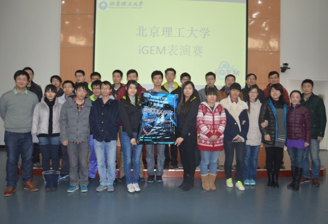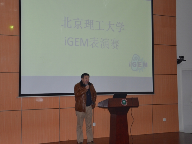 为了营造良好的大学生课外科技创新氛围,培养低年级同学的科研兴趣,beat365在线唯一官网登录iGEM两支代表队受邀于2013年12月8日上午,在北理工良乡校区综教报告厅进行iGEM表演赛。出席此次大赛的有生命学院院长邓玉林,副书记、副院长周连景,现代生物与医学工程研究中心副主任庆宏、空间生物与医学工程研究所马宏、生命学院团委书记王一飞、生物工程系主任科研助理贾海洋同学。会议由生命学院本科生辅导员欧先国主持。