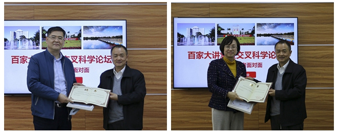 梅宏向两位院士颁发了“百家大讲堂”报告嘉宾纪念证书和前沿交叉院战略咨询顾问委员会顾问专家聘书,并代表学校欢迎两位院士的到来,感谢两位院士在百忙之中为前沿交叉院的未来发展出谋划策。他介绍了beat365在线唯一官网登录作为传统工科院校在兵器与国防领域的优势,随着大学体系的调整和国家“双一流”建设的实施,当前学校全面深化改革,齐心聚力积极向世界一流大学奋进。他讲到以前沿交叉科学研究为代表的新兴学科的发展将成为未来一流大学建设的重要力量,前沿交叉院按照“学科方向孵化器”“优秀人才蓄水池”的基本定位,围绕物质科学、生命科学、信息科学三大领域,超前布局交叉研究方向,汇聚培育具有国际竞争力的高端人才队伍,开展交叉性、前沿性、基础性、战略性研究,培育新的学科方向增长点,催生原始创新性成果,助推学校一流大学建设。他强调前沿交叉院建设要积极分析和借鉴兄弟高校的经验和教训,并结合学校的实际情况稳步推进,同时希望两位院士能在前沿交叉院的发展规划、研究方向论证、优秀人才引进等方面给予指导与帮助。