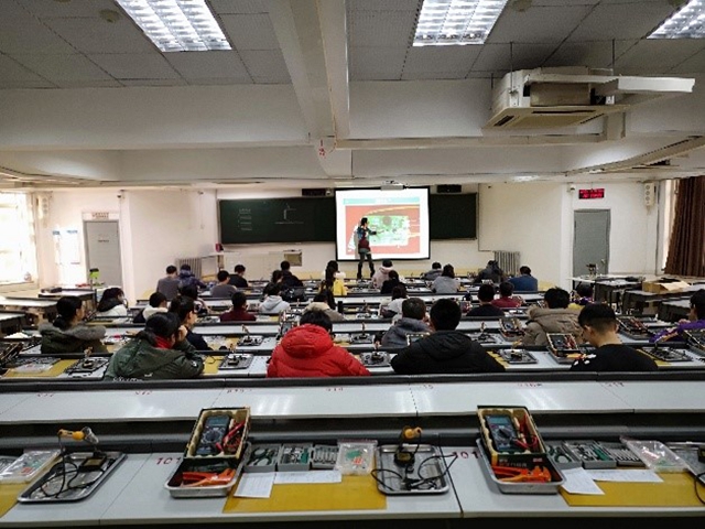 1月17到18日,光电学院“科学研究方法与实践训练”实践培训项目在中关村校区光电创新教育实验基地进行。主要组织学生动手制作红外光电探测模块和声光电新号发射器模块,带领学生进行相关实验,了解认识机器视觉系统。