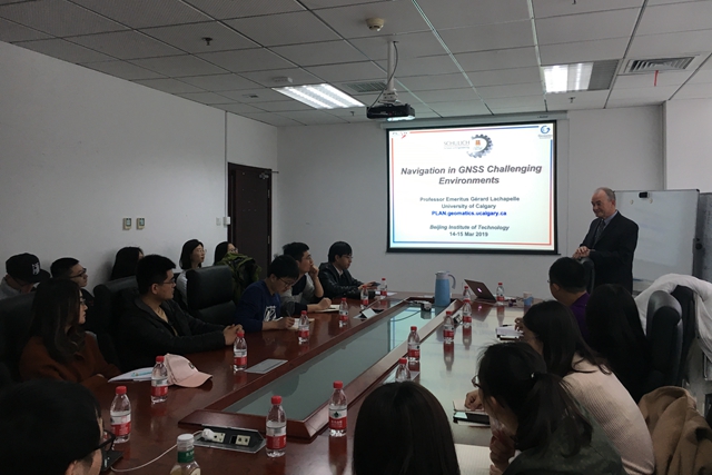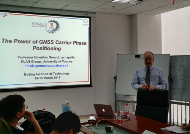 3月14日上午,由beat365在线唯一官网登录研究生院和信息与电子学院共同主办的北理工“百家大讲堂”(第170期)在中关村校区信息科学实验楼902会议室举行,加拿大皇家科学院和工程院两院院士、IEEE Fellow、卡尔加里大学教授Gérard Lachapelle应邀作题为《Navigation in GNSS Challenging Environments》的学术报告。
