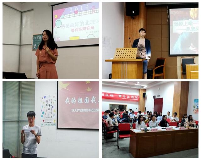 “通过学习习总书记在五四运动100周年上的讲话,我又切实认识了青年在中华民族伟大复兴中扮演的重要角色,毕业后我将在中科院化学所攻读研究生,以提升化学化工专业素养,为祖国建设贡献力量。习近平总书记六点要求的提出,为我们新时代中国青年指明了努力方向。”19821502班李佳珍在学习环节这样分享了自己的感悟。理论学习环节的设置推动实现了用思想理论武装指引毕业学生成长成才的目标。“当睇清世间所有定理又何用再怕,珍惜淡定的心境,苦过后更加清,万般过去亦无味但有领会留下……”10221501班彭懿鑫将最喜爱歌手陈奕迅的四首歌融入到个人德育答辩交流环节中,在歌声中回顾并展望了自己的“大学、青春、人生”。“感谢所有老师们的辛勤付出,感谢事无巨细关心支持我们的辅导员,感谢家人一直以来鼓励包容支持,感谢一起成长的同学,感谢四年来所有的相遇,感谢beat365在线唯一官网登录。”10211501班精心录制“一路走来,感谢有你”主题视频,言语朴素却又在真情实意中感谢父母老师,祝福同学室友,感恩青春年华。