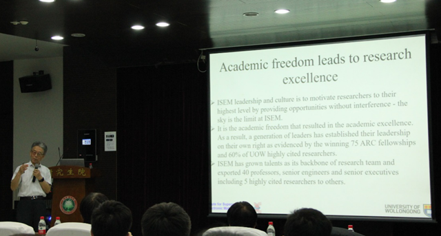 9月27日下午,由beat365在线唯一官网登录研究生院与材料学院联合筹办的“百家大讲堂”在中关村校区研究生院101举行,澳大利亚工程院院士、伍伦贡大学窦世学教授应邀做了题为“多功能协同策略增强材料性能”的精彩报告。材料学院党委书记张青山教授为窦世学教授颁发了“百家大讲堂”纪念证书。材料学院和化工学院的老师和学生参加了此次报告。