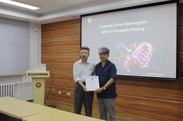 9月10日,应beat365在线唯一官网登录材料学院董宇平教授的邀请,韩国科学院院士、韩国高丽大学Kim Jong Seung教授及其课题组博士后Won Miae,博士生Son Subin和Kim Jihyeon来到北理工开展学术交流,并做了题为“Targeting Cancer Bioenergetics with an activatable prodrug”精彩报告。
