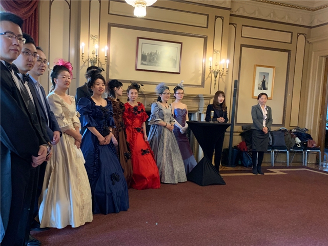 紧张而又快节奏的学习之后,大家终于可以放下身心的疲惫。在哈特里城堡内举行了隆重的毕业典礼,女士盘起头发穿上复古欧式礼服,男士系上领结穿上黑色燕尾服,仿佛穿越回了中世纪。在专业舞蹈老师的指导下,大家一起随着音乐翩翩起舞。