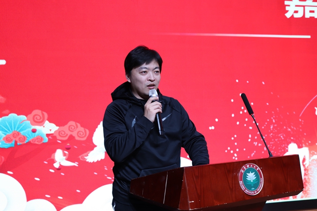 大会逐渐进入尾声,马晓宁进行致辞。他对获得荣誉、受到表彰的个人和集体再次进行祝贺、号召同学们传承奋斗精神、向优秀看齐,并提出恳切建议、鼓励广大学子在2020年继续努力,再创佳绩。