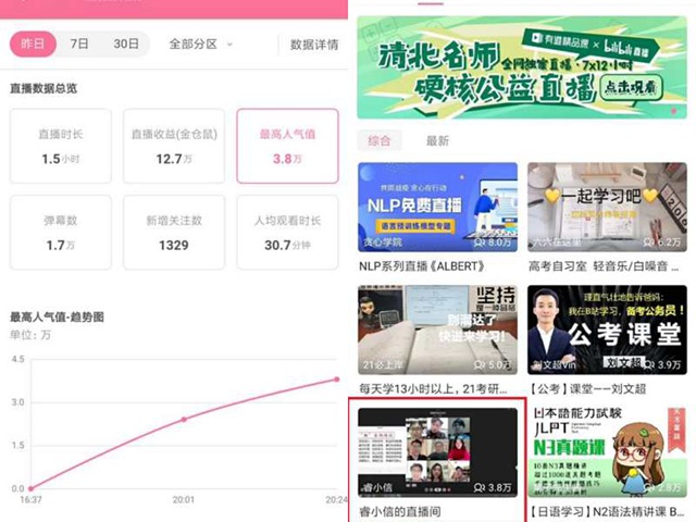 本次年级大会直播持续1.5小时,得到了同学们的积极响应和热情参与,弹幕数量1.7万,最高人气值达3.8万,直播人气一度跃升至哔哩哔哩网站学习直播区前5位。直播过程中,学生频繁发弹幕与辅导员互动,各位辅导员也通过视频连线与同学们分享了个人假期生活,表达了对同学们的问候和新学期寄语,辅导员白正琨演唱了歌曲《武汉伢》《都会没事的》,引发了同学们的深切共鸣,“睿小信”直播间发出了“武汉加油,中国加油”的弹幕呼声。