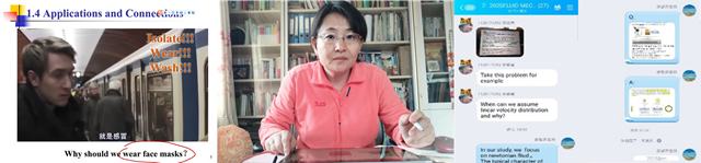 “Why should we wear face mask?“,这是2月26日《Fluid Mechanics》云课堂上张敏弟老师为了引入流体力学课程向同学们提出的一个问题,课程的第一讲正是在观看口罩防护原理的视频中开始了。“上课前还对网络教学的效果心存忐忑,实际上却发现同学们似乎早已适应了这种学习模式,有的同学上午10:19就签到开始学习课程了,完成学习后同学们对限时的课堂测试都进行了作答。”张敏弟老师兴奋地感慨道。这样的网络上课效果离不开老师背后充分的准备,张敏弟老师在开课前就在乐学平台首页列出了前两周的课程PPT和讲解视频文件,让学生在上课前就大致了解课程内容。同时在直播方面,张敏弟老师也是早有准备,早在2016年其课程组就基于中文流体力学课程共同录制慕课,于2018年还被评为国家级精品在线开放课程,这才积累了充分的在线讲授经验,才得以从容开启这堂网络教学直播课。