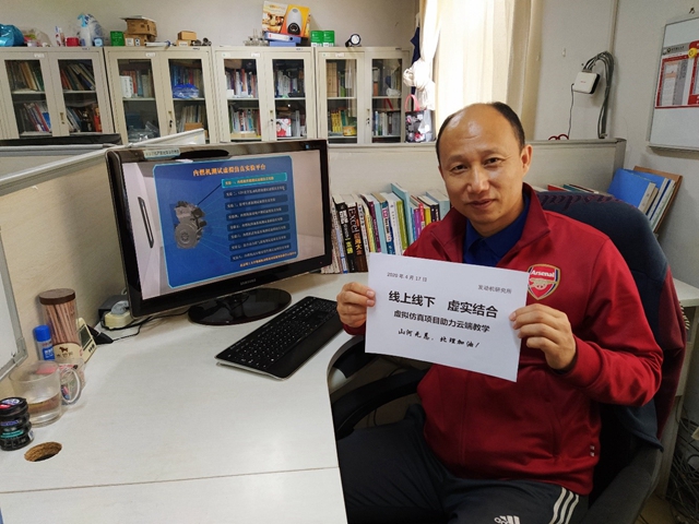 “内燃机测试实验应该是穿着工服,满身机油,一边动手调试测试系统,一边模拟常规和极端工况采集数据。”2017级覃咏淳同学曾这样憧憬这学期的实验课。一场突出起来的疫情,使工科实验教学面临空间、设备等条件限制,无法正常开展。