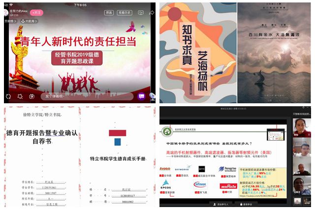 为了引导和促进我校青年学生深入认识自我、探索发展方向、明确大学目标,在大学一年级阶段顺利完成大学适应和思想转变,助力学生成长成才,学校于3月启动2019级本科生德育开题工作。由于受新冠肺炎疫情影响,本次德育开题工作与以往不同,所有班级采用线上“云”开题的形式进行。虽然形式有变,但“德”字味并未减弱。各书院充分组织和调动辅导员、班主任、专业教师、“三全育人”导师等力量,通过线上宣传教育、个性化指导、云端答辩等各环节,加强师生“一对一”深入交流,帮助学生明确自我认识和自我规划对人生发展的重要性,引导学生认识到德育开题工作的意义,确保德育“云”开题工作不走形、不变样、不弱化。