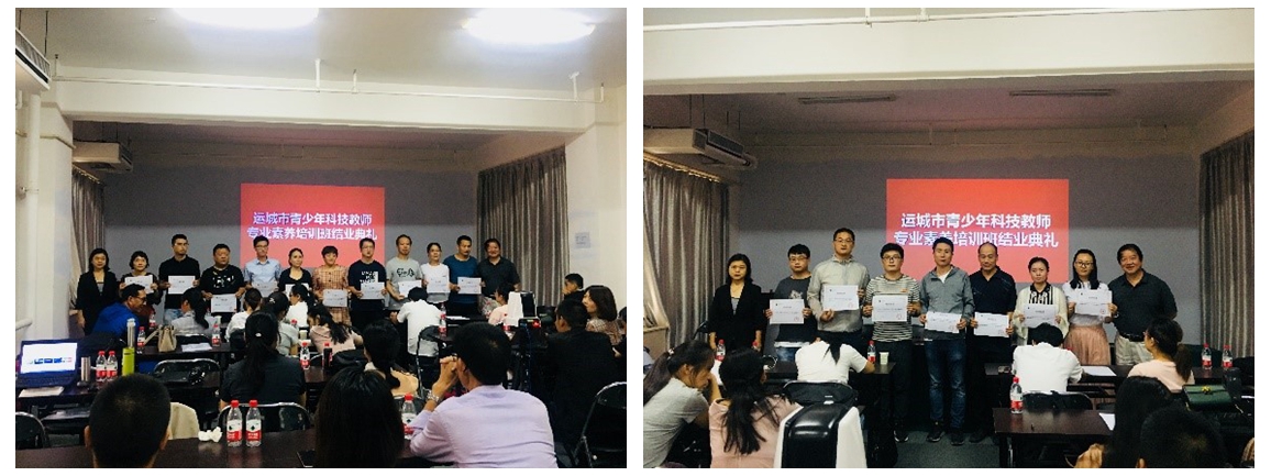 培训结束,大家合影留念,并纷纷表示此次培训定会大大增强运城地区中小学科技教师参加科技培训的积极性与主动性。