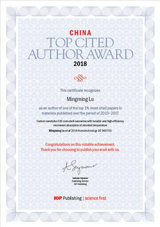 日前,材料学院曹茂盛教授收到英国皇家物理学会(IOP)发来的贺信,其指导的博士生卢明明和王希晰以共同第一作者身份发表在Nano...