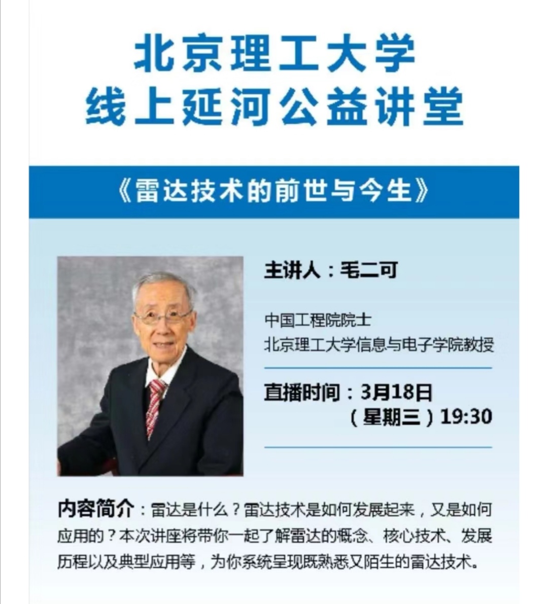 毛二可院士线上延河公益讲堂海报