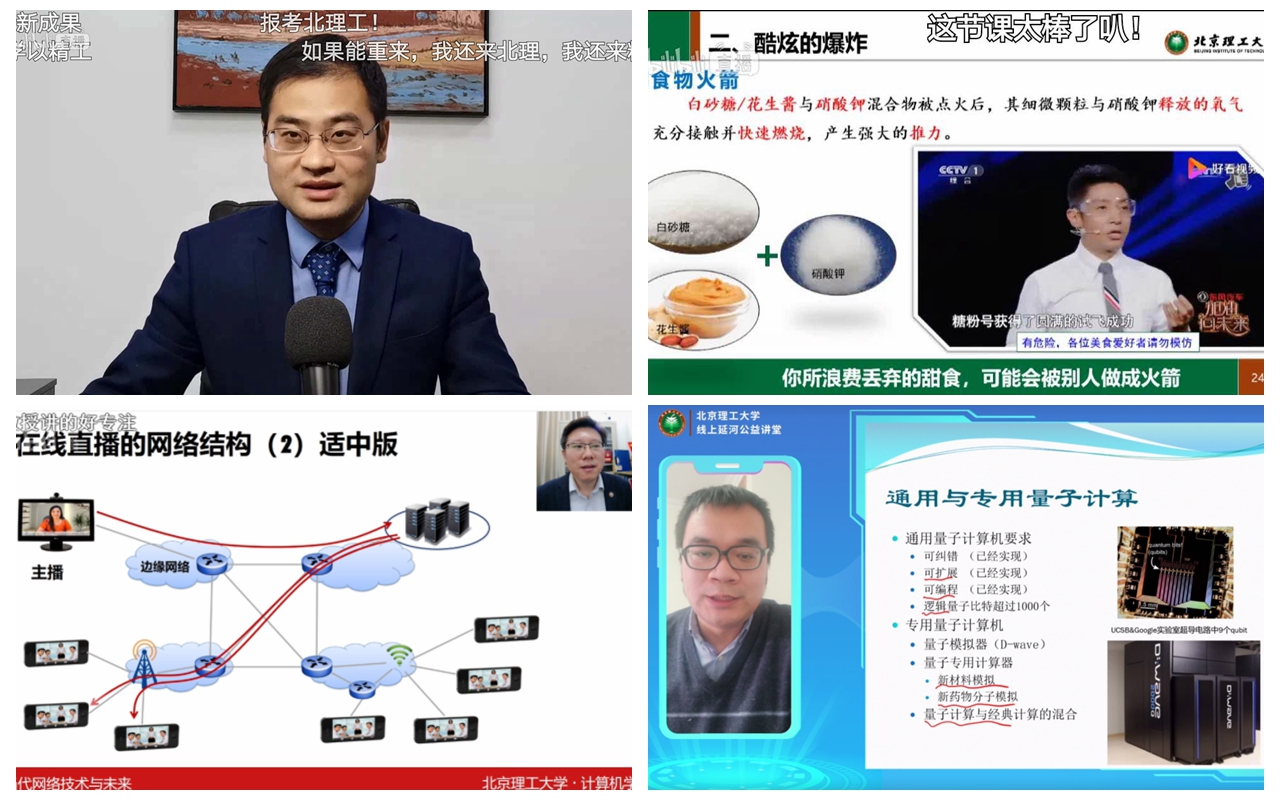 “在北理工原来有这么艺术的科技研究!”“‘网红’嵩老师讲的好专注!”“遇事不决,量子力学。量子物理与科幻电影的结合太妙了!”……在名师大咖的带动下,多位青年教师走进延河讲堂,创新授课形式,为师生居家抗疫生活点亮科技之光,齐心协力共克时艰。