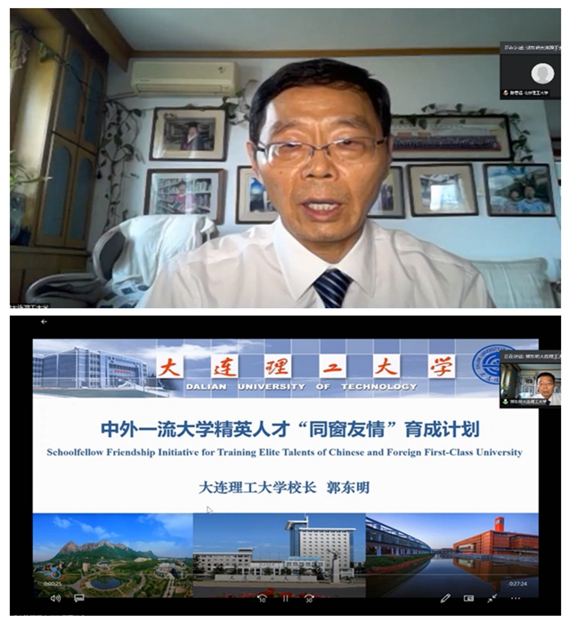 郭东明以《中外一流大学精英人才“同窗友情”育成计划》为题作大会报告。报告围绕“当今世界的发展,对世界一流大学人才培养的需求是什么?”“面向世界的未来,一流大学要如何回应这些需求 ?”“如何共同实现世界一流大学的理想与使命?”三个问题,阐述中外一流 大学精英人才“同窗友情”育成计划路线图,倡议中外一流大学积极营造同窗友情氛围和创造条件,促进双方学生进行深入交流,比如通过同教室上课、同食堂用餐、同校园生活增进国际学生的文化认同,培养未来熟悉两国文化的各界精英人才,进而成为推动双方共同发展,持续友好的生力军。同时,分享了大连理工大学在推进实施“同窗友情”育成计划的实践成果。