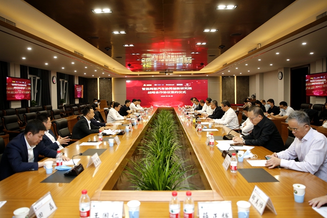 会上,五方代表共同签署了《共建智能网联汽车协同创新研究院战略合作协议》。