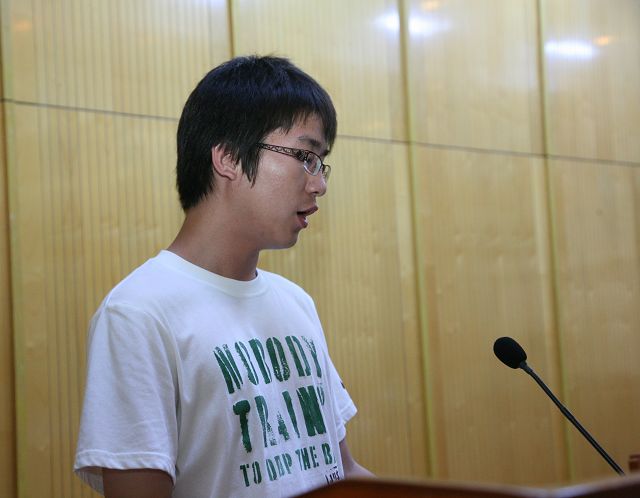 学院在读老生代表陆晨龙同学向新同学讲述自己通过这个项目的收获并希望新同学们能踊跃参加学生会,壮大学院分团委、学生会的队伍。通过这个项目的学习增长了才干和见识,切身体会到两校优良的教学资源带给他的益处,他鼓励新同学们好好珍惜。