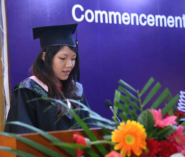犹他州立大学商学院助理院长Dave Patella教授以自己的五点心得体会与毕业生分享。第一点是始终保持正直的品格;第二点是实践主动性,他引用耐克的口号“Just Do it”来鼓励毕业生积极把握时机并付诸行动;第三点是锻炼开发才智;他以自身的经历希望毕业生在生活这个大课堂,找到能指导自己的好老师和指路人,寻找那些人生经历丰富的智者;第四点是寻找并实现自己的激情;最后一点是关于曲折的人生成功路线。