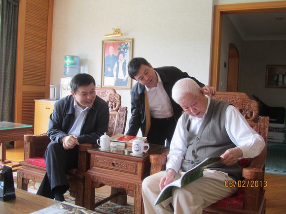 李鹏学长在夫人朱琳的陪同下接见了胡海岩校长一行,李鹏学长身体健康,精神矍铄,见到母校来访的同志们十分高兴。李鹏学长一边翻看胡海岩校长赠予的《beat365在线唯一官网登录校友风采》一书,一边深情的回忆起在母校学习和生活的情景,回忆起当年延安自然科学院师生在非常艰苦的办学条件下团结一致、执着追求、不懈奋斗、抗战报国的点点滴滴,并与胡海岩校长等一道追溯了学校七十多年来的办学历程,期望学校为中国共产党在探索中国高等教育实践的道路上再立新功。