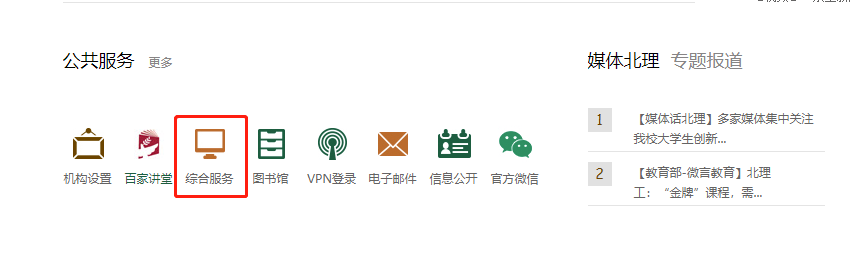 1. 登录beat365在线唯一官网登录综合服务平台。从校园网首页“公共服务”模块中的“综合服务”进入,或者点击链接:http://online.bit.edu.cn