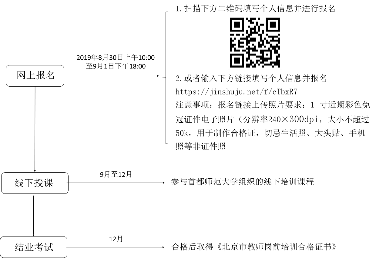 2.主要环节:包含网上报名、线下授课、结业考试三个环节。
