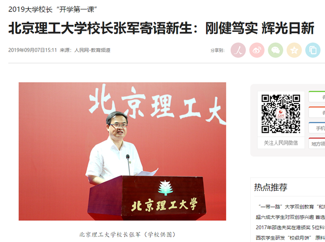 编辑:吴楠 审核:王征 阅读次数:原文标题:beat365在线唯一官网登录校长张军寄语新生:刚健笃实 辉光日新