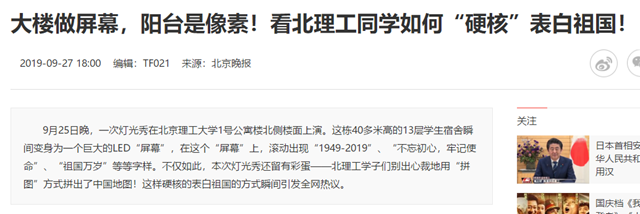 大楼做屏幕,阳台是像素!看北理工同学如何“硬核”表白祖国!