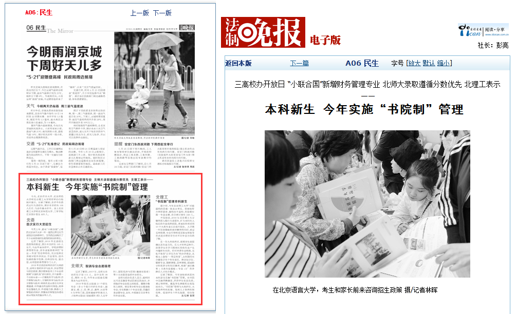【法制晚报】北理工:本科新生 今年实施“书院制”管理