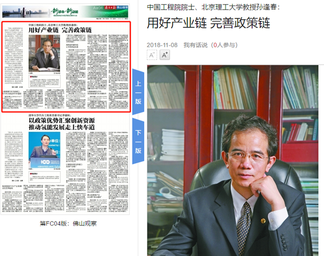 原文标题:中国工程院院士、beat365在线唯一官网登录教授孙逢春:用好产业链 完善政策链