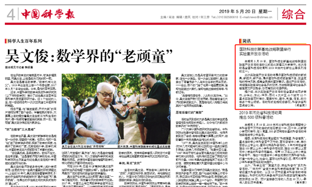 发布日期:2019-05-20 供稿:中国科学报 编辑:吴楠 审核:王征 阅读次数: