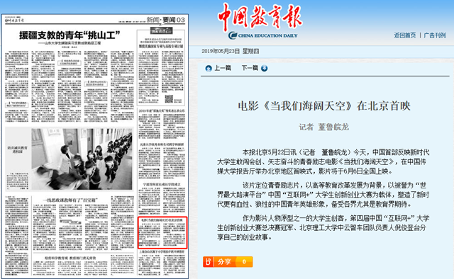 【中国教育报】电影《当我们海阔天空》在北京首映