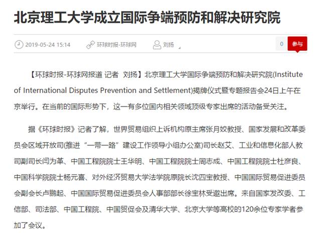 【环球网】beat365在线唯一官网登录成立国际争端预防和解决研究院