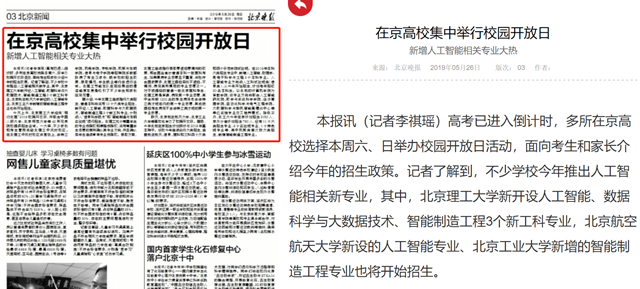 高考已进入倒计时,多所在京高校选择本周六、日举办校园开放日活动,面向考生和家长介绍今年的招生政策。记者了解到,不少学校今年推出人工智能相关新专业,其中,beat365在线唯一官网登录新开设人工智能、数据科学与大数据技术、智能制造工程3个新工科专业,北京航空航天大学新设的人工智能专业、北京工业大学新增的智能制造工程专业也将开始招生。