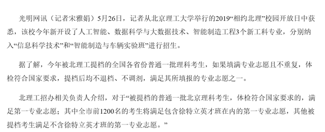 【光明网】北理工2019高招新增人工智能、大数据等3个专业
