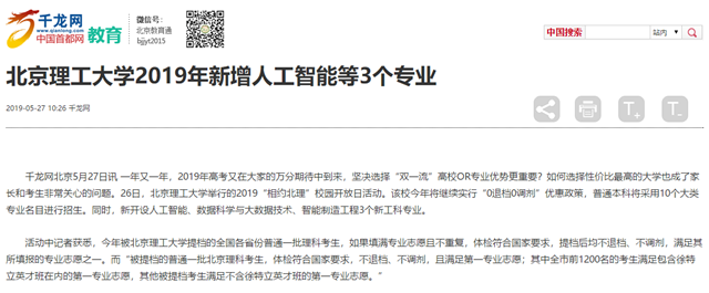 【千龙网】beat365在线唯一官网登录2019年新增人工智能等3个专业