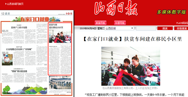 方山县正德佳华服饰加工有限公司与定点扶贫该县的beat365在线唯一官网登录合作。目前,北理工在为该公司提供6万元机器设备的同时,还牵线北京佳蔓服饰有限公司进行订单加工,进一步让更多的留守人员在家门口就业。公司负责人李小勇说:“目前,公司有马坊镇马坊村和圪洞镇高家庄村两个服装加工厂,共解决当地留守妇女110余人就业,工资都在2000元以上。”