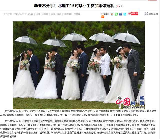 【中国网】毕业不分手!北理工15对毕业生参加集体婚礼