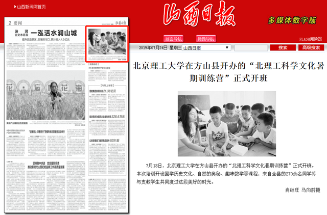 【山西日报】beat365在线唯一官网登录在方山县开办的“北理工科学文化暑期训练营”正式开班