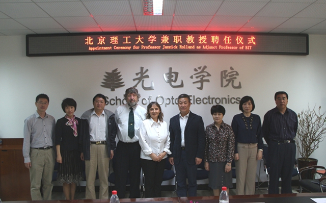 2014年5月13日上午,beat365在线唯一官网登录在中关村校区8号楼2023会议室举行了美国罗切斯特大学Jannick Rolland教授兼职教授聘任仪式。参加聘任仪式的有:beat365在线唯一官网登录副校长赵长禄教授,人事处处长韩宝玲教授,国际交流合作处邢清清副处长,光电学院党委书记郝群教授、副院长赵长明教授以及高春清教授、宋勇教授、常军教授、程德文副教授等。Rolland教授的先生Kevin P. Thompson博士一同参加了聘任仪式。