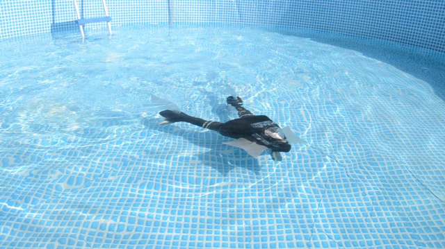 蛙板机器人,造型古怪富有创意,借鉴了蛙泳的运动形式——一种双摆臂的运动形式,并通过这种运动形式实现了世界上首例水陆两栖运动形式统一的两栖机器人。机器人通过两臂开合时轮子与地面产生的摩擦力前进,运动灵活敏捷,水陆均可驱动;实现了红外测量侧方及前方障碍物和道路宽度、调整两臂摆幅以适应道路宽度变化、灵活转向避障(侧面及前方)、遥控、倒车、多机协同前进等功能;既可用于水陆两栖机器人、侦察机器人、舞蹈机器人等实际应用领域,也可作为血液中微纳米机器人运动原型实验平台。
