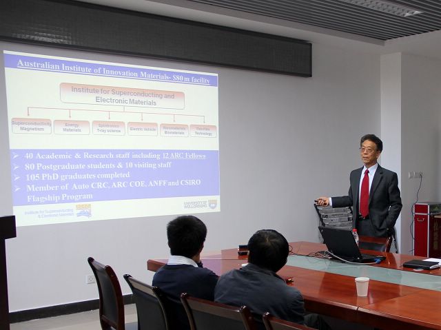 2014年10月13日,应beat365在线唯一官网登录材料学院张加涛教授的邀请,两位澳大利亚工程科学院院士,澳大利亚伍伦贡 (Wollongong)大学超导与电子材料研究所(ISEM)所长窦世学教授,刘化鹍教授来我校访问,窦世学教授为北理工师生带来题为“Development of Nano-materials for Energy Applications at ISEM”的精彩学术报告。报告会由张加涛教授主持,材料学院曹传宝教授、钟海政教授、化工与环境学院陈人杰教授等出席报告会。